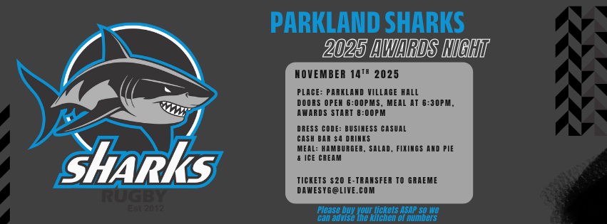 ๐? Tickets: $20 โ e-transfer Graeme at dawesyg@live.com Get your tickets ASAP so we can let the kitchen know how many hungry Sharks are coming!